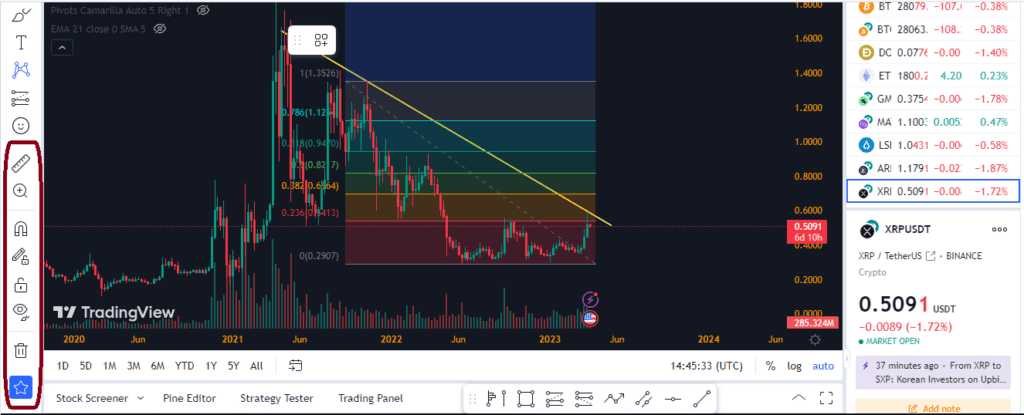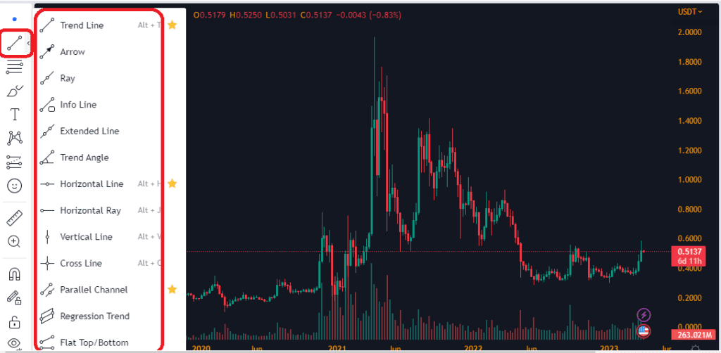 ابزار ترسیم انواع خطوط در Tradingview