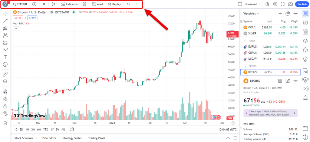 نوار ابزار تریدینگ ویو