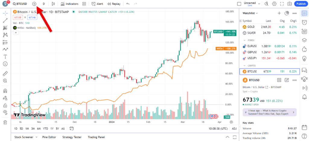ابزار مقایسه دو نمودار در تریدینگ ویو