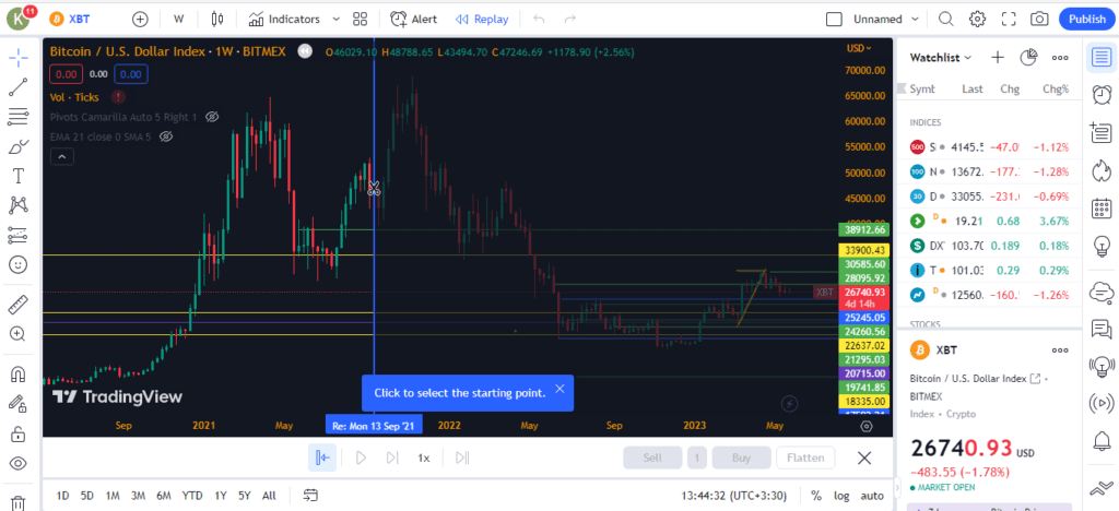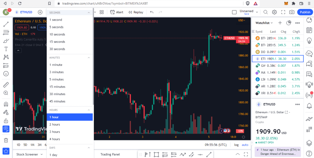 ابزار تنظیم بازه زمانی نمودار در تریدینگ ویو