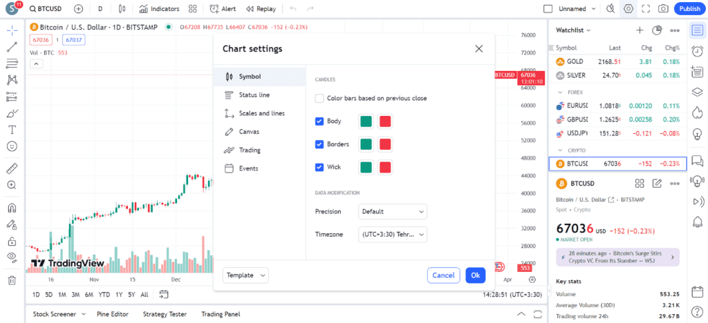 تنظیمات نمودار و شخصیسازی آنها در تریدینگ ویو
